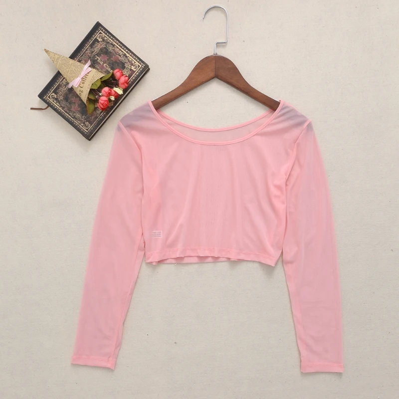 » Cashback Women Sexy Slim Semi-transparent Mesh Crop Tops Girl Long Sleeve Short T-Shirts Tees Single Layer