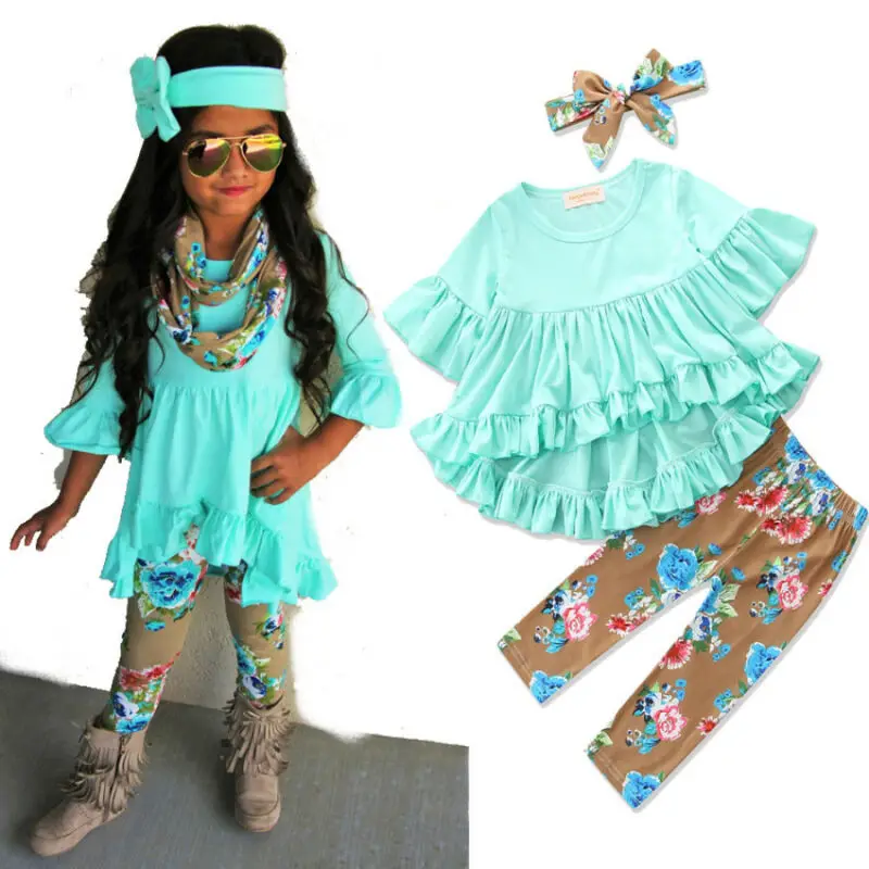 Purchase 3Pcs Infant Kid Baby Girl Long Sleeve Top Dress Floral Printed Pants Legging Headband Outfit Clothe