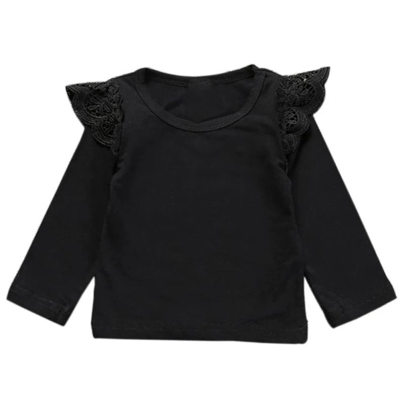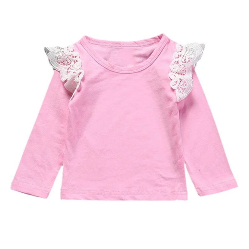 Pre-owned Solid Color Autumn Newborn Baby Girls Toddler Kids Clothes Cotton Lace Long Sleeve T-shirts Tops Ou