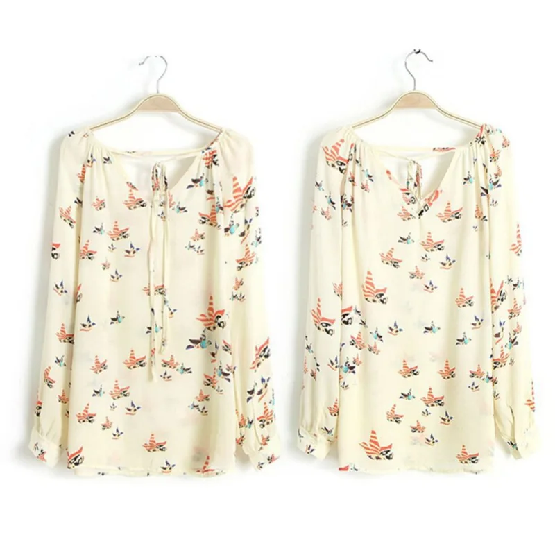 Bargain New Floral Long Sleeve Vintage Blouse Cherry Turn Down Collar Shirt Blusas Feminino Ladies Blouses