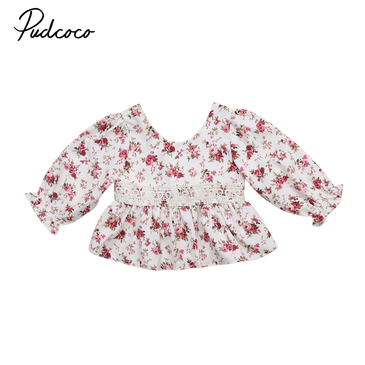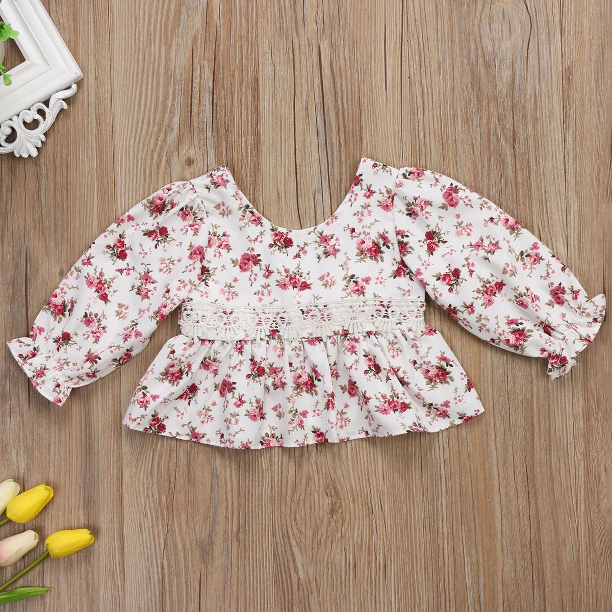 Offer Little Baby Girls Lace Floral T-shirt Blouse Clothes Babies Fille Flower Long Sleeve Tops shirt Shi