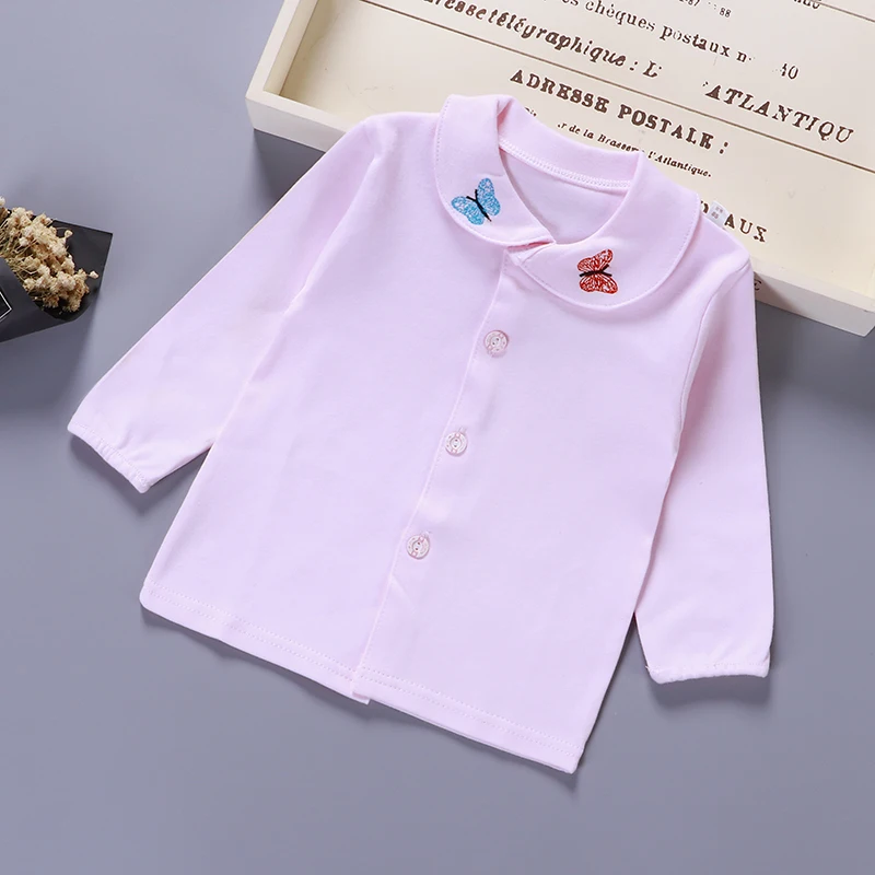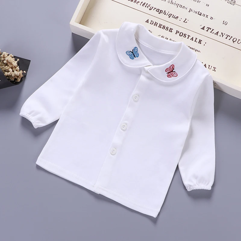 On sale Baby Kids Girls Autumn Cotton Embroidery Pattern Shirt Tops Blouse Long Sleeve Turn-down Collar Chi