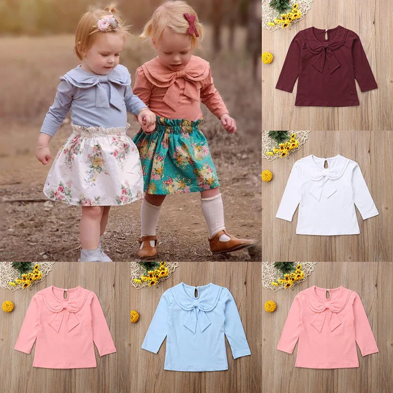 Purchase Newborn Kid Baby Girl Collar Bowknot T-Shirts Tops Spring Autumn Long Sleeve Pullover Tees Children