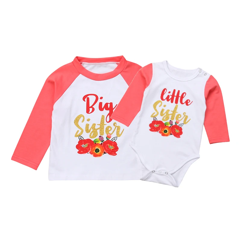 Refurbished Family Clothes Kids Baby Girl Little Sister Long Sleeve Romper Big Sister T-shirt Tops Flower Outfi