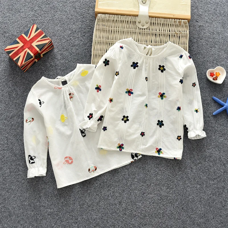 » Refurbished girls long sleeve T-shirt baby fashion cotton shirt top embroidery Floral Cotton T-shirt Blouse tod
